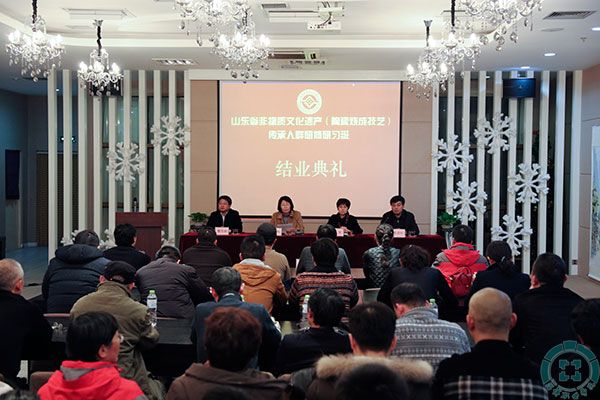 本站讯(通讯员 李艳勤)12月16日下午,由山东省文化厅、山东省教育厅主办、我院陶瓷琉璃艺术系承办的“山东省非物质文化遗产传承人群陶艺培训班”在我院举行结业典礼。山东省文化厅非遗处处长姜慧,我院院长杨百梅出席活动,结业典礼由淄博市文化广电新闻出版局书记、局长周茂松主持。