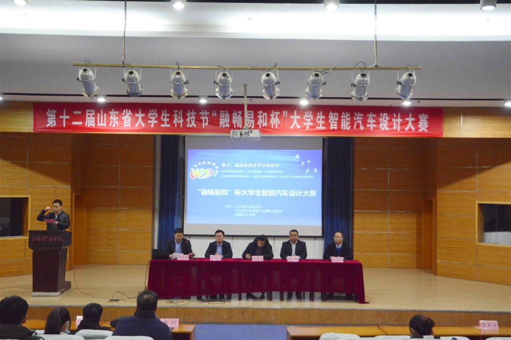 本站讯(通讯员 张迪)12月4日—5日,由山东省科学技术协会、山东省教育厅、共青团山东省委、山东省发展和改革委员会、山东省工业和信息化厅、山东省人力资源和社会保障厅联合主办,山东省自动化学会、山东省汽车维修与检测行业协会、350vip浦京集团共同承办的第十二届山东省大学生科技节“融畅易和杯”大学生智能汽车设计大赛在我院举行,来自全省10所本科院校、6所高职院校的142支队伍参加本次比赛。山东省自动化学会秘书长郑富全,山东省汽车维修与检测行业协会会长钟兵、秘书长吴芷红,成都融畅易和科技有限公司总经理谭柯,山东科雷普电子科技有限公司总经理王海峰,学院党委委员、宣传统战部部长张成山,汽车系负责人高晓琛以及各参赛队领队、指导教师与参赛选手200余人参加了开赛仪式,仪式由高晓琛主持。