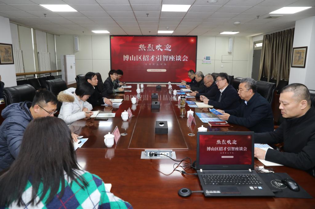 本站讯(通讯员 刘相如)3月12日上午,博山区人社局及企业代表到学院就招才引智和访企拓岗进行座谈交流。学院党委副书记、院长孙启友,博山区人力资源和社会保障局党组书记、局长翟明阳出席座谈。座谈会由我院党委委员、副院长毕思勇主持。