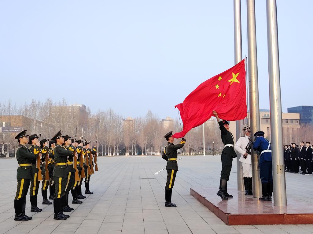 7时整,国旗护卫队方队迈着整齐而铿锵的步伐走向升旗台,随着“向国旗敬礼”口令声落,庄严的《义勇军进行曲》奏响,鲜艳的五星红旗冉冉升起。
