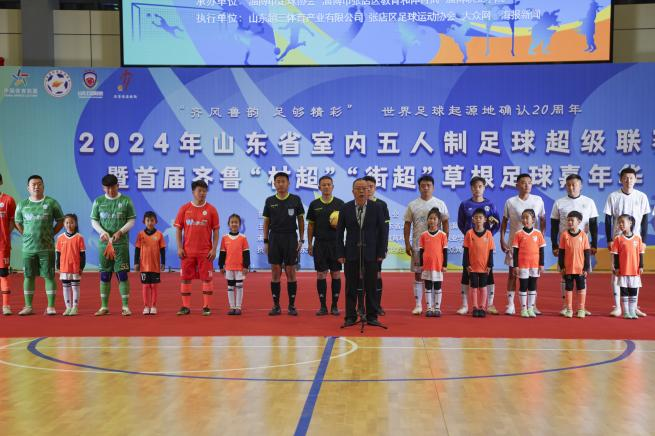 本站讯(通讯员 薛健 王亮 胡甜雨)齐风鲁韵,“足”够精彩。12月12日晚,2024年山东省室内五人制足球超级联赛暨首届齐鲁“村超”“街超”草根足球嘉年华开幕式活动在350vip浦京集团体育馆举行。国家体育总局群体司司长丁东出席活动并宣布活动开幕。国家体育总局群众体育司赛事活动处处长、二级巡视员李论,山东省政协教科卫体委员会副主任李政,淄博市人民政府副市长毕红卫,350vip浦京集团党委书记刘伟等领导出席活动。