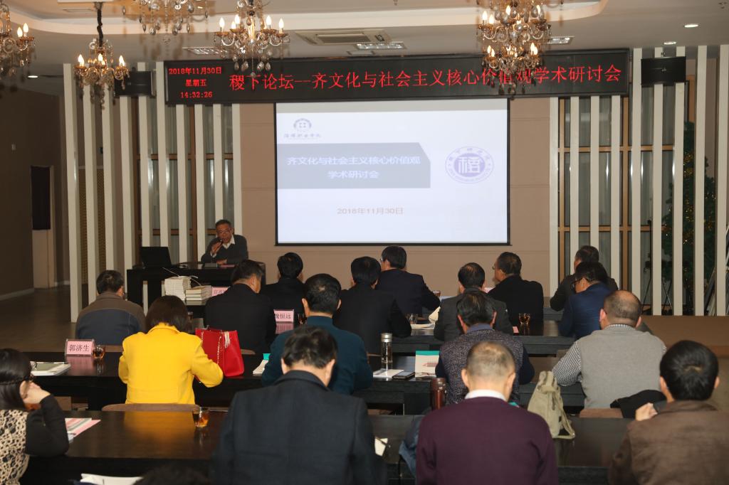 研讨会上,部分专家学者作了专题学术发言。内容涉及到“齐文化与社会主义核心价值观”中的“和谐”“法治”“敬业”“诚信”等共通部分。与会专家的发言,既继承古代稷下学宫开放、包容、学术自由等精神,深入挖掘了齐文化的内涵,又结合时代需求,古为今用、推陈出新,为弘扬社会主义核心价值观提供了借鉴意义。