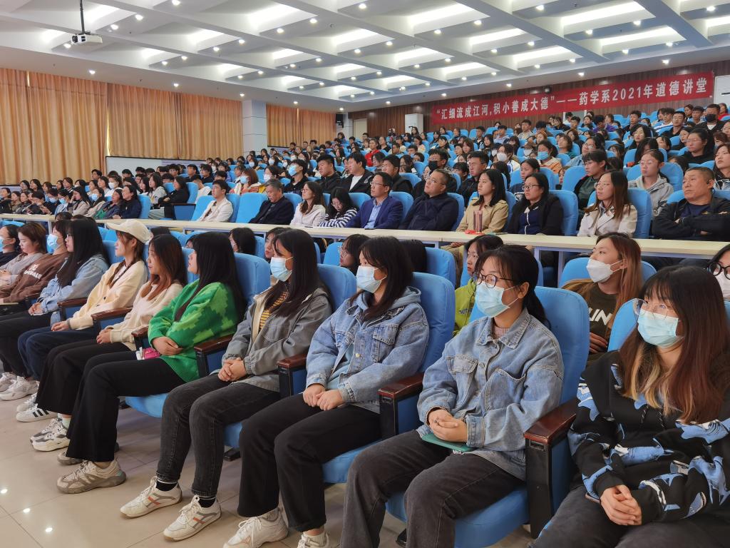 本站讯 (通讯员 张楠)为弘扬中华优秀传统文化,充分发挥道德模范的辐射带动作用,10月26日下午,药学系2021年道德讲堂活动在西校区报告厅举行。该系师生300余人参加活动。