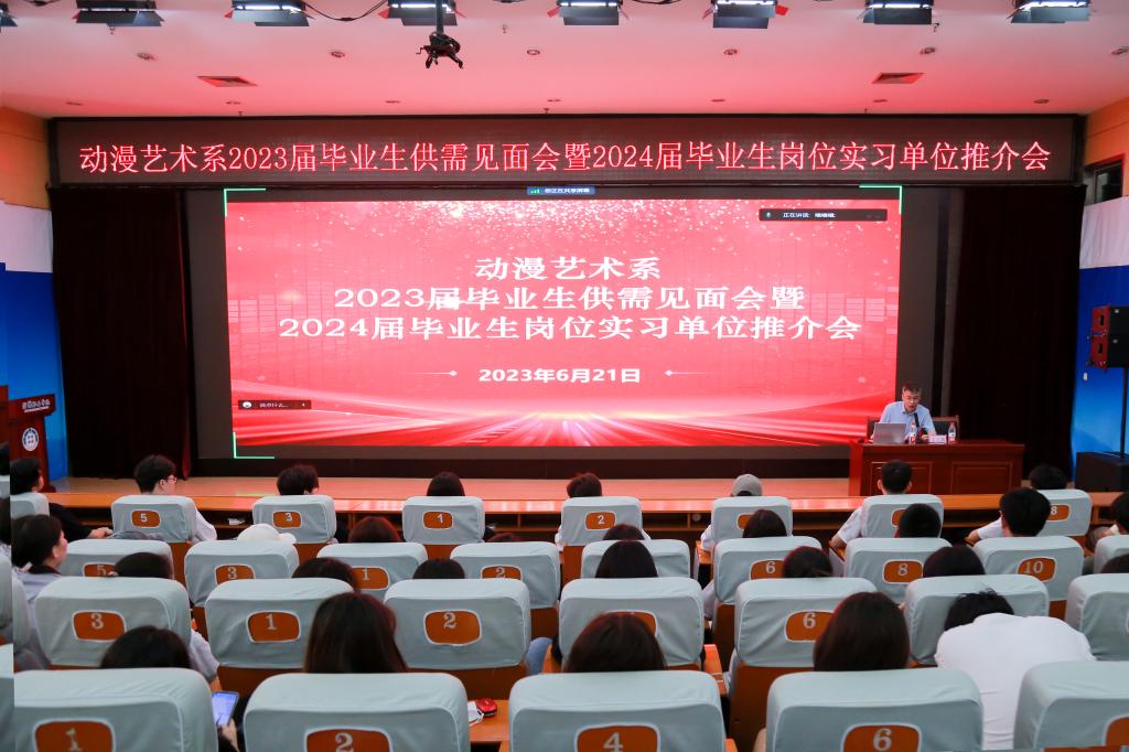 本站讯(通讯员 岳圳)为确保2023届毕业生顺利就业,推动2024届毕业生岗位实习工作顺利进行,6月21日上午,动漫艺术系在北校区立德楼报告厅举办2023届毕业生供需见面会暨2024届毕业生岗位实习单位推介会,山东星科智能科技股份有限公司、山东时光坐标文化科技有限公司、淄博聚艺众合文化传播有限公司等12家企业到场,采取线上线下同时宣讲的方式进行。动漫艺术系2023届和2024届毕业生共计400余人参会。