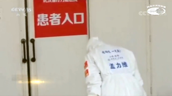 武汉客厅方舱医院患者清零休舱。孟力维最后关上医院大门,并饱含深情地对着大门深鞠了一躬。这个视频成为国家大剧院合唱团抗击疫情主题歌曲MV《天使告诉我》的压轴镜头。