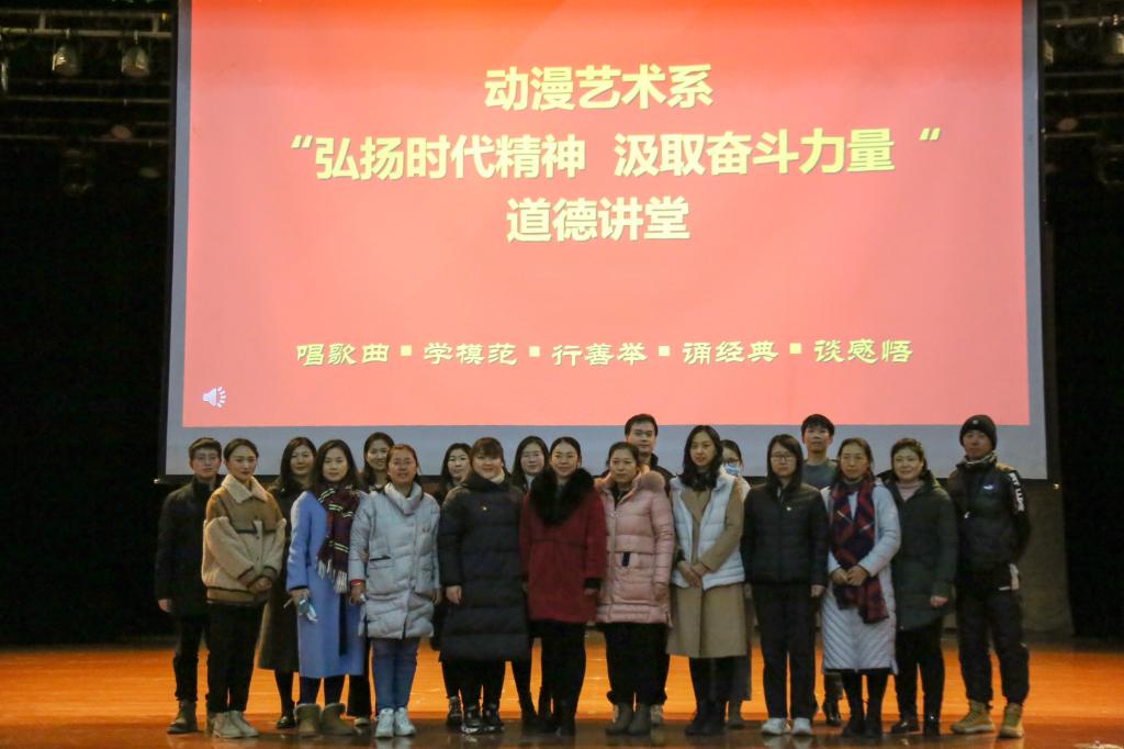 本站讯(通讯员岳圳)11月9日下午,动漫艺术系在北校区音乐厅开展“弘扬时代精神,汲取奋斗力量”道德讲堂活动。该系全体教师及300余名学生参加。