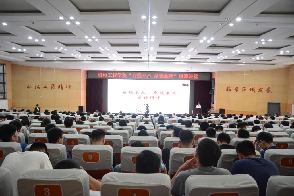 本站讯(通讯员 孟虹谕)5月18日下午,机电工程学院在北校区报告厅举办了“自强不息,厚德载物”道德讲堂。该院科级以上干部、专任教师及学生代表共470余人参加。