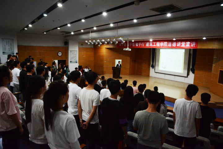 本站讯(通讯员 孟昱)6月5日下午,建筑工程学院在南校区尚德楼报告厅举办以“厚于德、诚于信、敏于行”为主题的道德讲堂。300余名师生参加了此次活动。