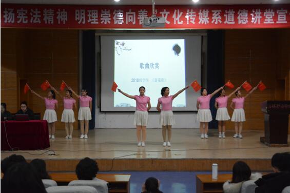 本站讯(通讯员 周义),12月14日,文化传媒系举办了以“弘扬宪法精神,明理崇德向善”为主题的道德讲堂活动。活动由教师与学生共同主持,系负责人、教师代表以及18级全体新生参加此次活动。