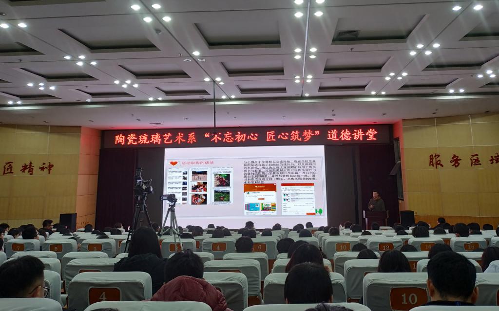 本站讯(通讯员 刘文婷)近日,陶瓷琉璃艺术系在北校区立德楼报告厅举办了“不忘初心 匠心筑梦”道德讲堂宣讲活动,该系全体教师和在校生200余人参加了活动。