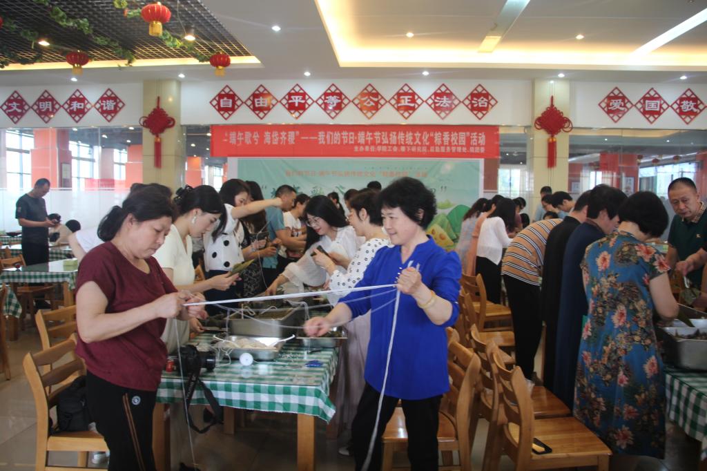 师生代表齐聚到教职工餐厅,看到准备好的江米、粽叶、红枣等食材,大家分组围坐,大展身手,相互学习包粽子的方法。师傅带徒弟,不一会就包出了一盘盘形态各异的粽子。稷下研究院和团委还安排了笛子、古筝、琵琶独奏、吉他民谣弹唱表演,师生们一边欣赏古典音乐,一边品尝煮好的粽子,其乐融融,沉浸在一片温馨和谐的氛围中。