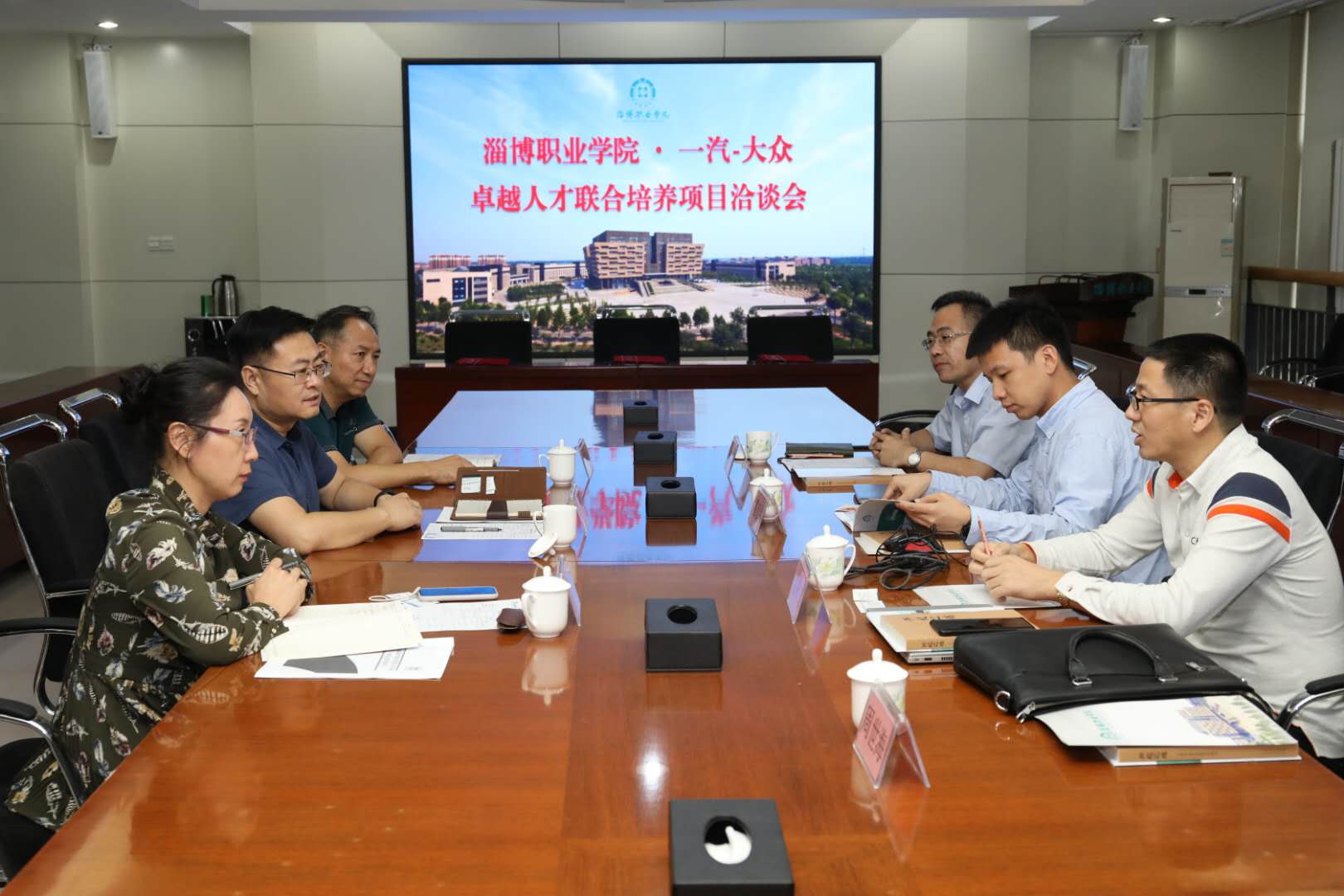 9月29日下午,一汽大众卓越英才联合培养项目组霍彦伟、孙伟等一行5人到350vip浦京集团考察交流校企合作事宜,学院党委成员、宣传统战部部长张成山及汽车工程系相关教师参加了座谈会。
