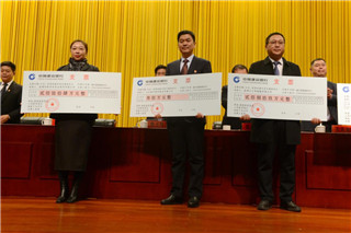 公司财务总监侯宁(中)代表公司上台领奖