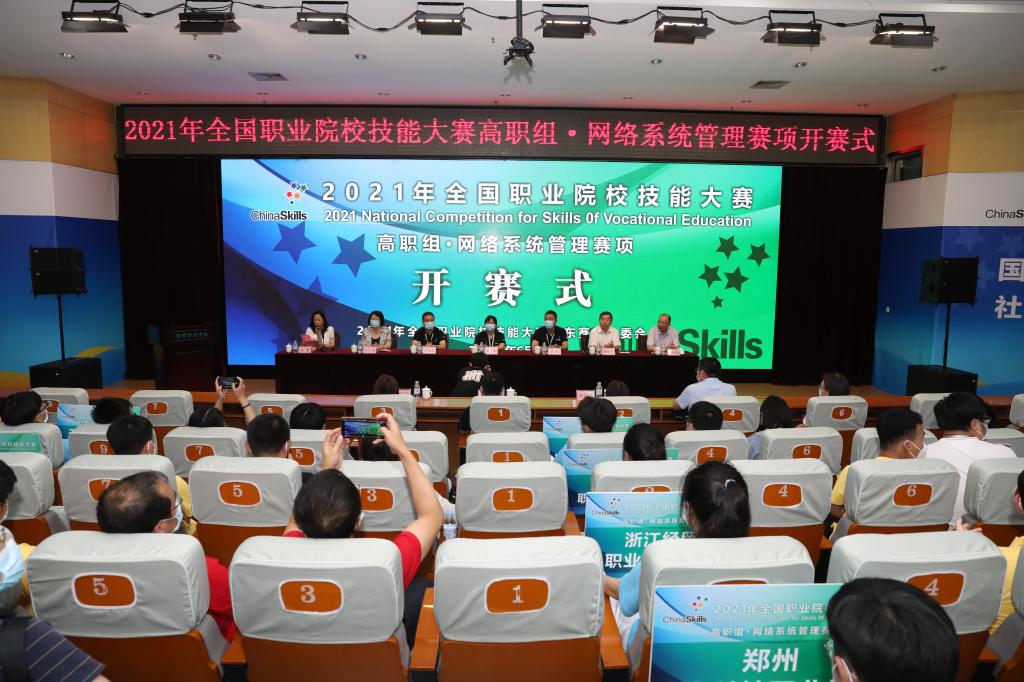 6月21日下午,2021年全国职业院校技能大赛高职组网络系统管理赛项在350vip浦京集团开赛。淄博市教育局党组成员、市教研室党总支书记李铮声出席开赛式并宣布大赛开赛,淄博市教育局职业教育与继续教育科科长孙隆洲参加,学院党委副书记、院长杨百梅致欢迎辞,院党委委员、副院长高霞主持开赛式。