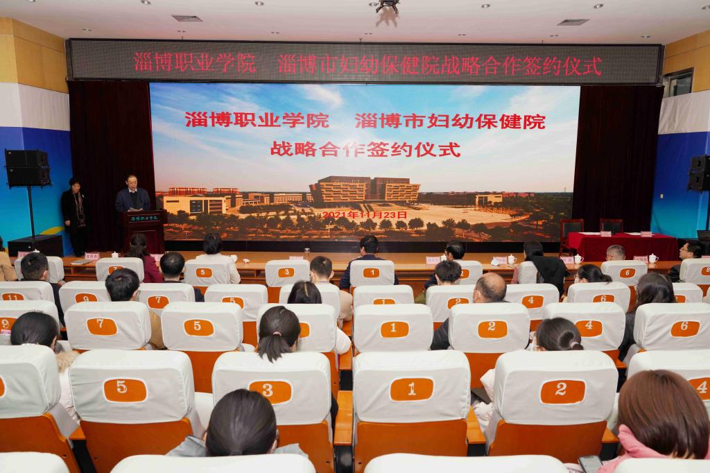我校与淄博市妇幼保健院战略合作签约仪式在立德楼报告厅举行。淄博市妇幼保健院党委书记张立新,党委副书记、院长叶大勇,党委委员、副院长李冬梅,党委委员、副院长李娟,党委委员、总会计师许波,我校党委书记张爱民,党委副书记、校长杨百梅,工会,教务处,校企合作与就业指导中心,校医院,护理学院,医学技术学院,药学系等部门相关负责人参加。会议由学校党委委员、副校长曾照香主持。